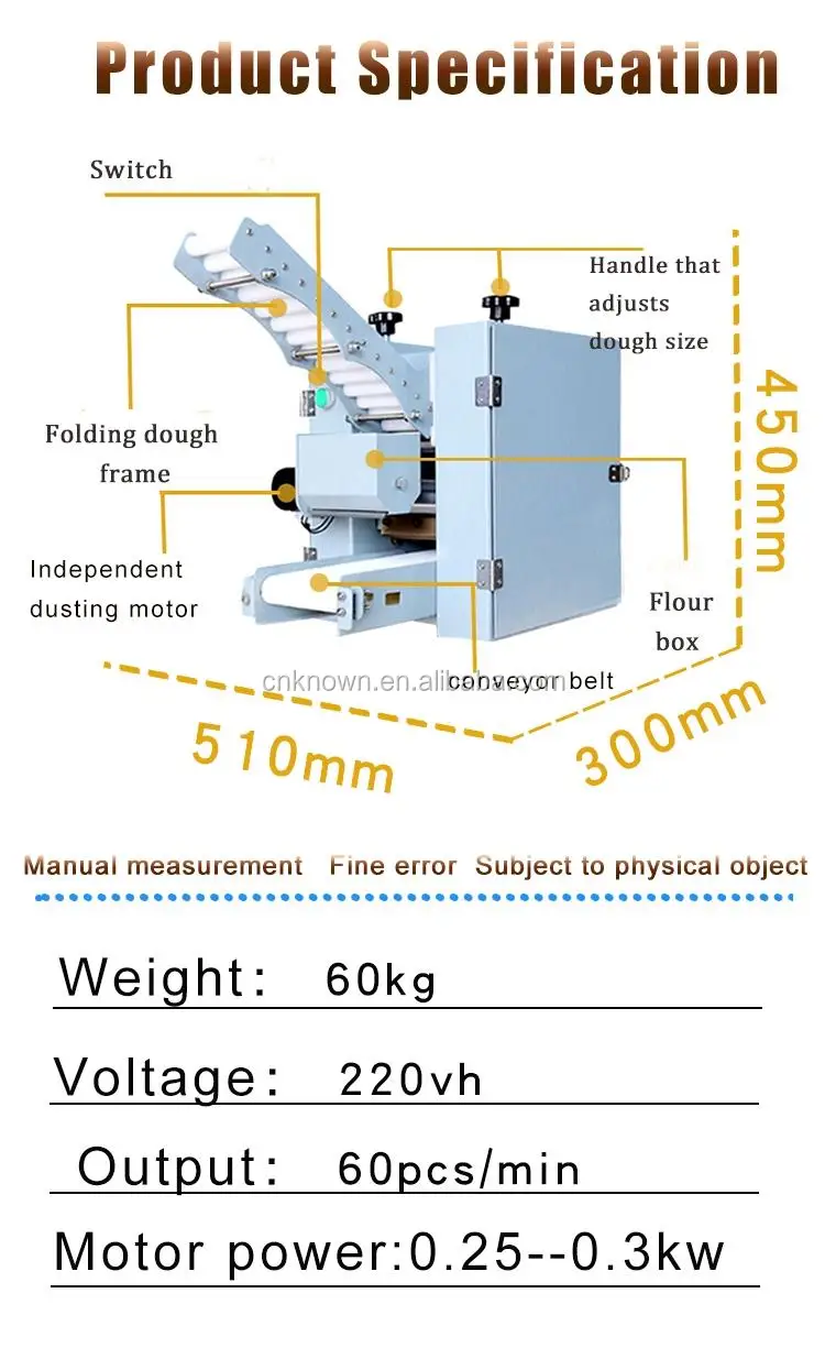 The dumpling wrapper machine parameter | |