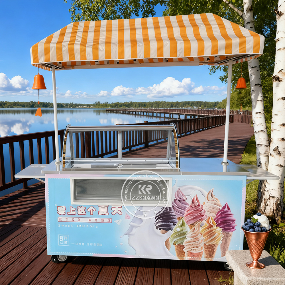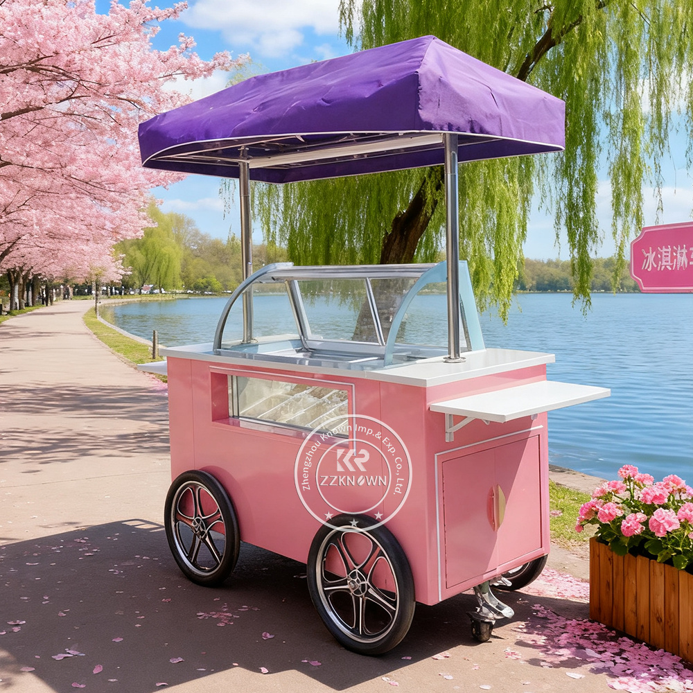 Outdoor Mobile Ice Cream Vending Cart Hand-Pushed Stainless Steel Food Cart
